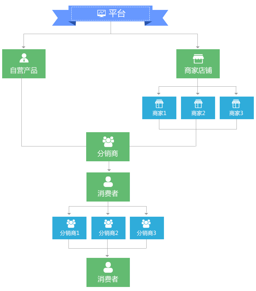 平台采取双分销模式,全民推荐商家入驻,可获得本商家产品部门返利,全民推广平台,可获得3级产品佣金