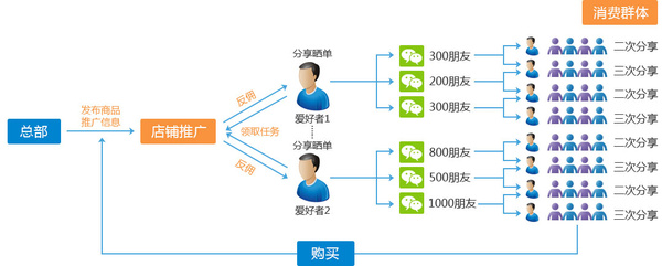 二级分销模式是分销系统的一种运营方案,分销系统分为一,二,三,三个级别的分销模式,每种的模式原理都是相似的,只是分销商级别个数不同,因而产生的佣金比例划分以及裂变分销的速度有所差异,具体采用哪种级别的分销模式要看商家的规模和意愿。微信二级分销模式最吸引商家的地方就是在于通过二级分销让分销商可以进行快速裂变,同时享受下一级销售产品所获得的佣金。