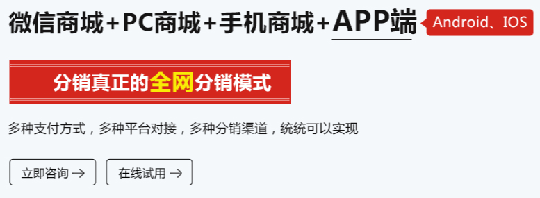 微信分销商城系统一个总部后台管理对所有分销商完全掌控,快速精准的管控各级微分销商,从招募,运营,微分销管理,订单处理,销售情况。分销商入驻系统申请一键操控管理,会员统一管理做精准营销。系统针对分销商而言,多种分销模式,总有一个适合你。特色微信分销招募亿万粉丝为您卖货。