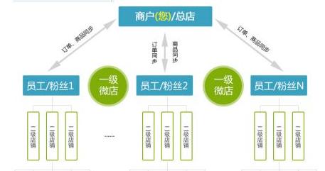 企业通过在微信上开通微信三级分销商城,员工和经销商在公司的微信分销商城基础上生成专属于自己的一个分销商城(员工与经销商即二级分销商),员工的朋友或者经销商的客户在员工或经销商的个人