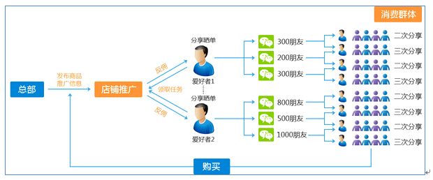 微信分销系统主要解决的是在社交媒体的环境下包含微信,QQ,微博等社交平台,增加企业产品的销售力、品牌的传播力以及行业的影响力的问题。在社交平台上借助裂变营销的模式,返利分红的方式带
