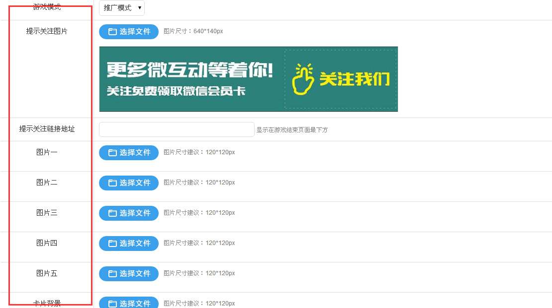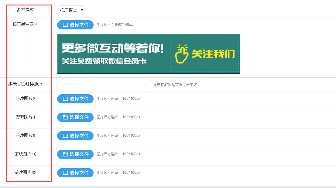 注意:1.选择游戏模式,推广模式用于推广,积分模式可让游戏玩家获得积分;