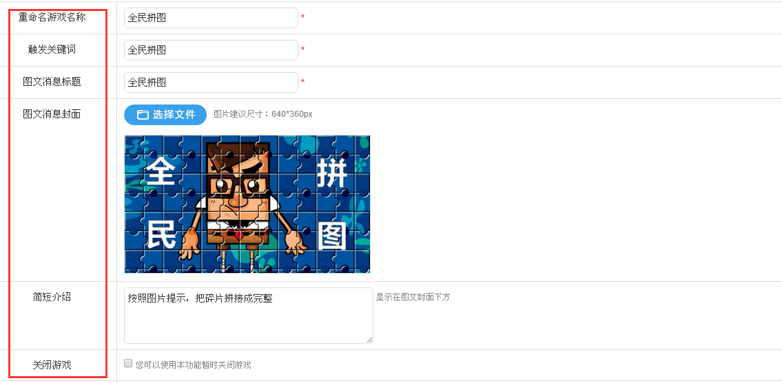 第七步:设置“全民拼图”游戏,点击操作按钮进入设置页面。