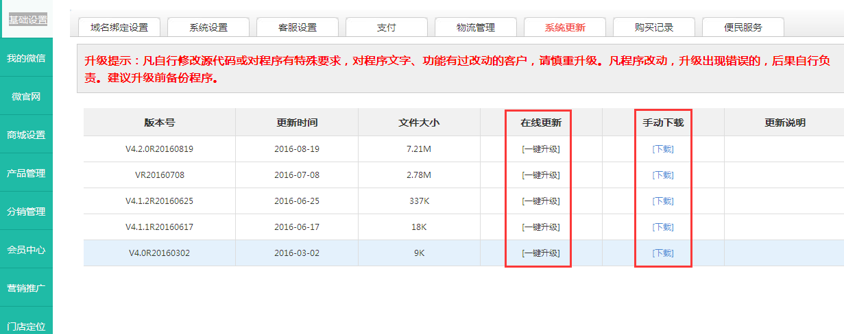 升级提示:凡自行修改源代码或对程序有特殊要求,对程序文字、功能有过改动的客户,请慎重升级。凡程序改动,升级出现错误的,后果自行负责。建议升级前备份程序。