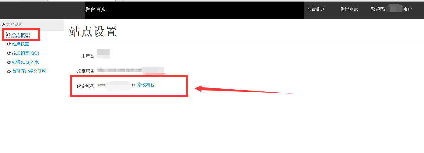 3.域名解析并开启防护之后,将解析好的域名填写到网站后台的绑定域名处,点击修改域名之后,需要联系我司客服,在程序上绑定此域名就可以正常使用了。