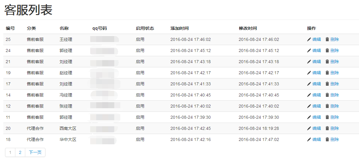 已添加过的客服QQ都会显示在销售QQ列表处。如下图: