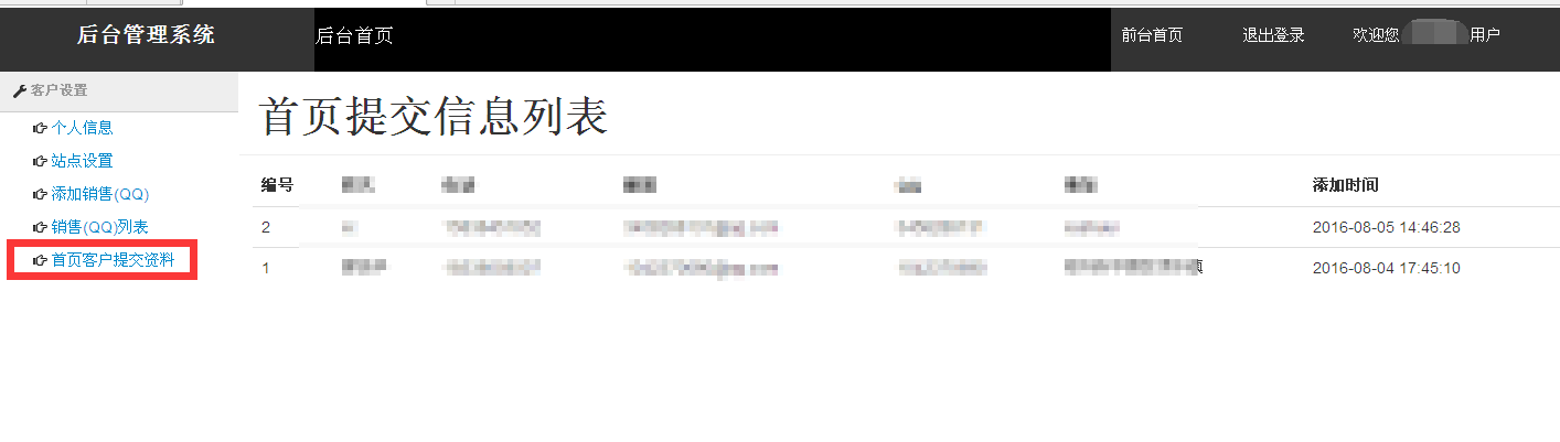 网站首页上客户添加的资料信息都会显示在这里。