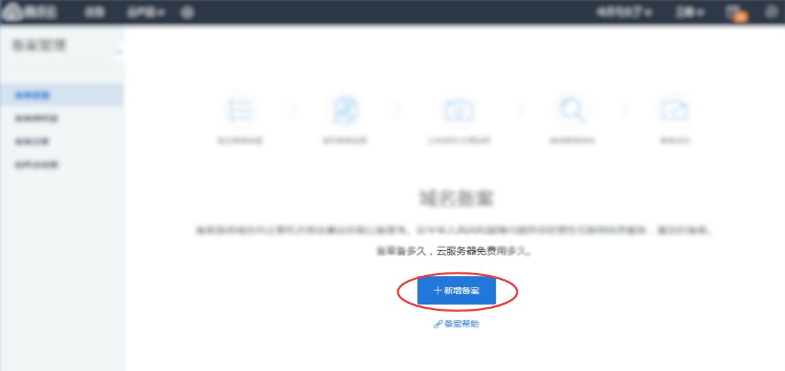 1)登陆腾讯云官网,进入备案控制台,点击新增备案