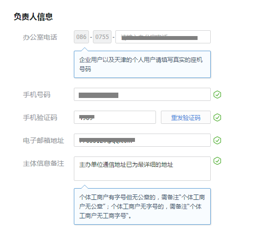 注:个人备案可不必填写办公电话。