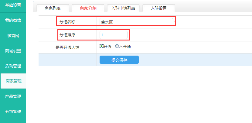 是否开通店铺:选择开通