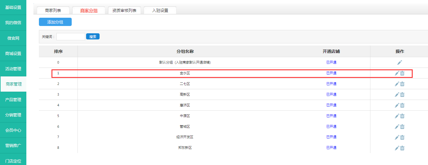 分组名称:可自定义设置 如 郑东新区