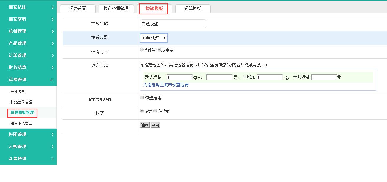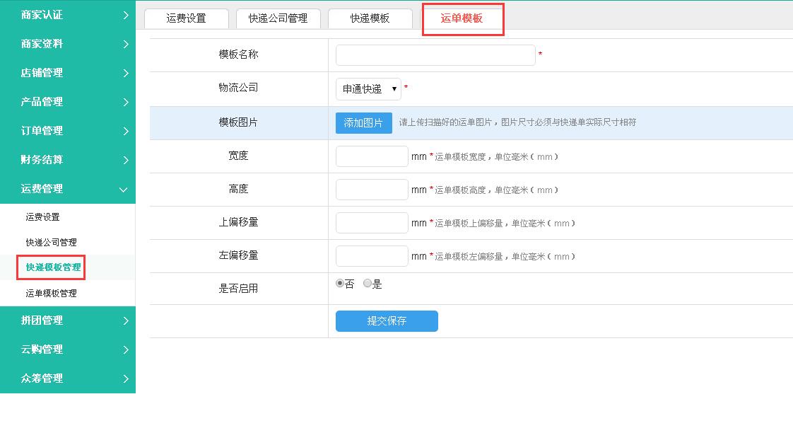 添加快递模板