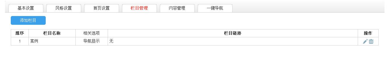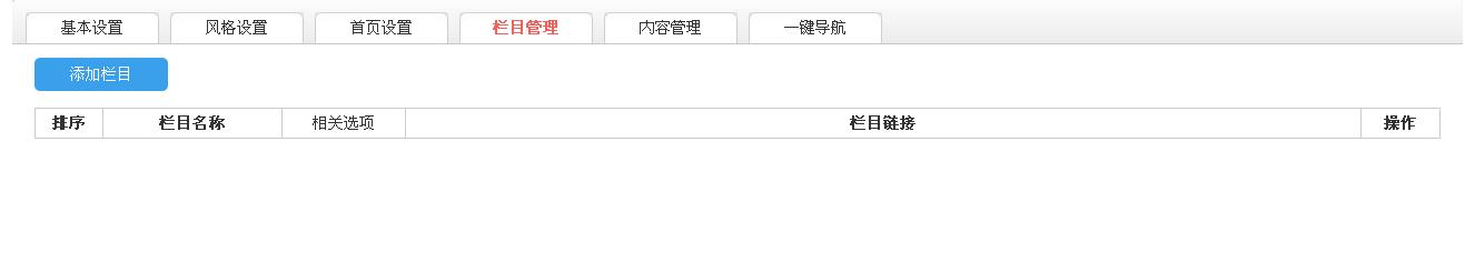 保存后,即出现如下图的栏目后台。继续添加栏目,即可获得更多栏目。
