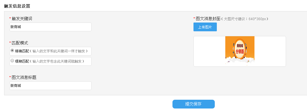 在公众号中输入触发关键词,会有一条图文消息,点开之后就是商城