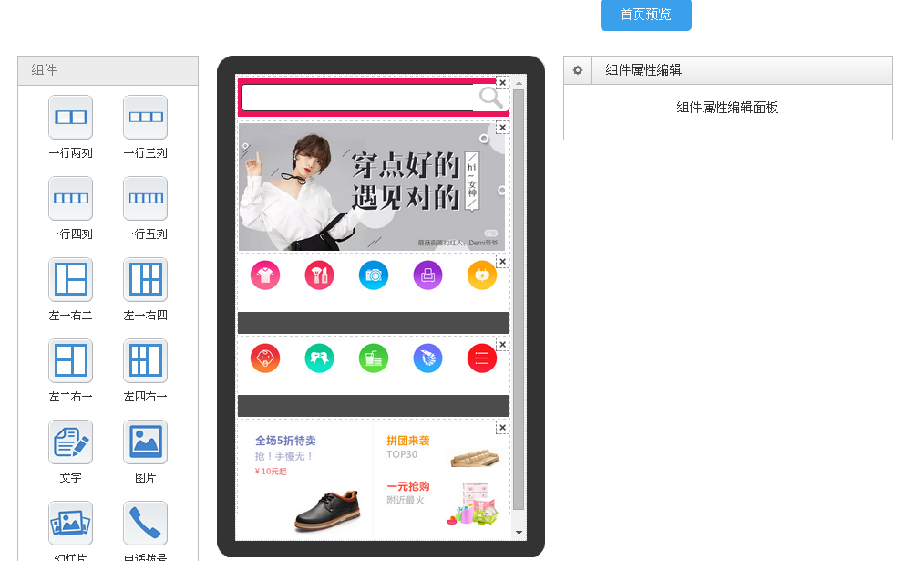 可以根据自己的想法去设置商城首页,这是我设置的一个,大家可以参考一下