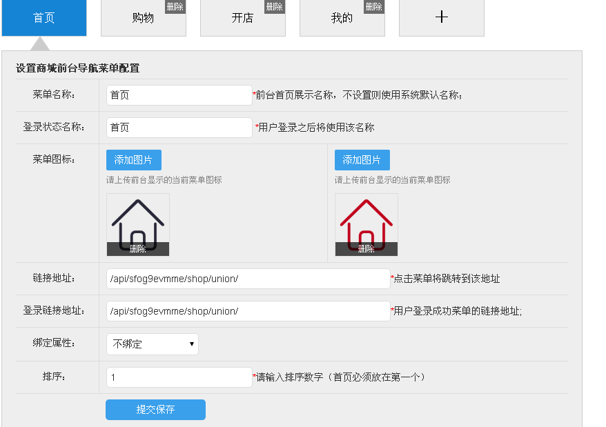 菜单图标:系统都有默认的,可以根据自己商城的装修风格进行修改