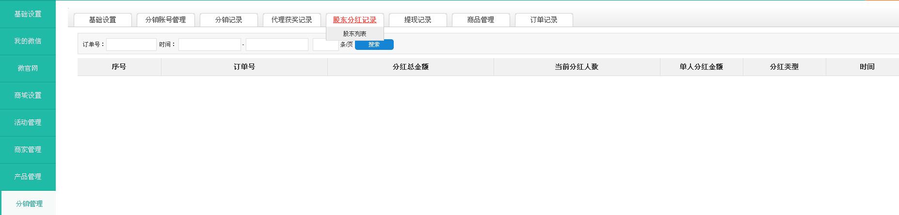 股东分红记录 股东是达到特定条件下可以申请为股东,股东提取的是整个商城订单的佣金,商城股东平分股东佣金,分红记录里面可以看到股东分红人数,以及自己分红所得的佣金金额情况。
