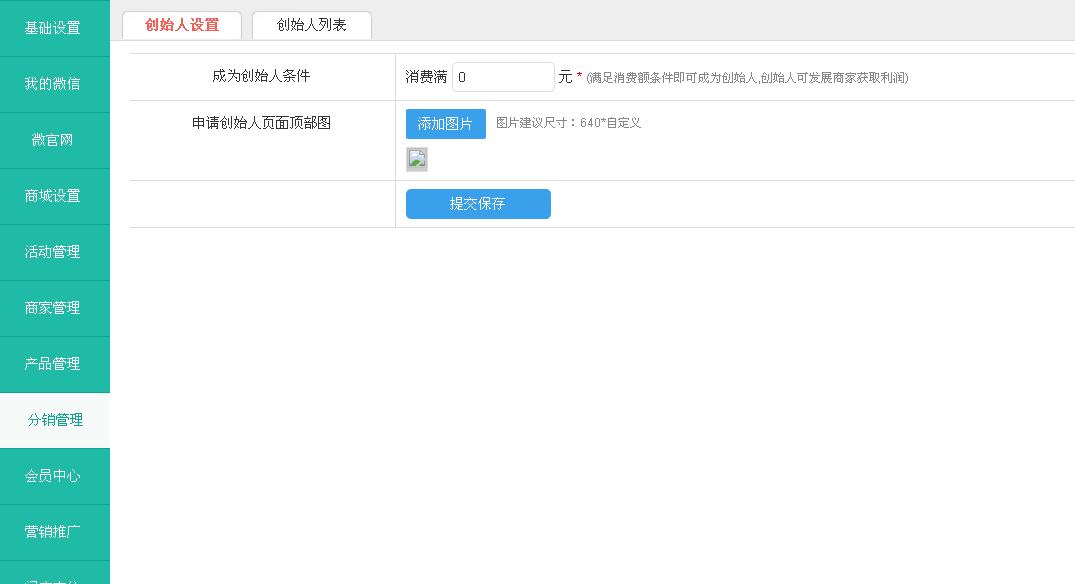 (2)申请创始人页面顶部图:添加图片(图片建议尺寸640*自定义)