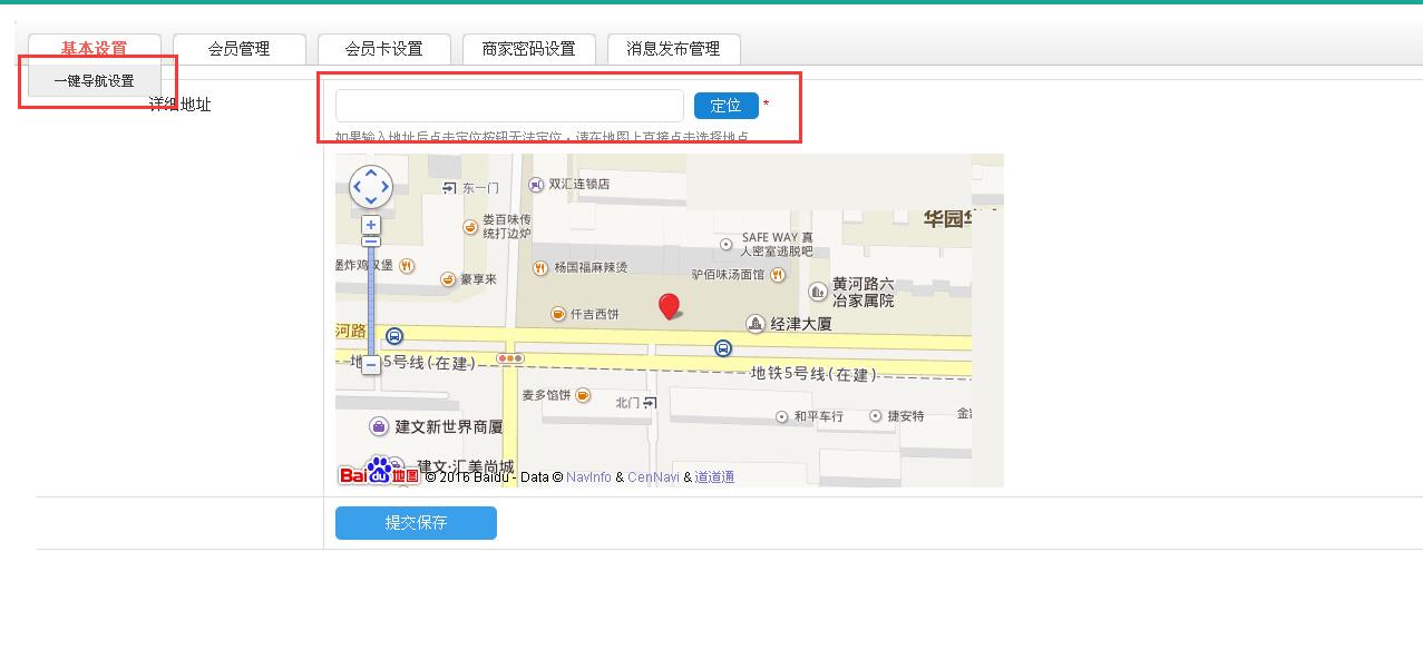 5商家的详细地址:在系统的一键导航页面中设定。