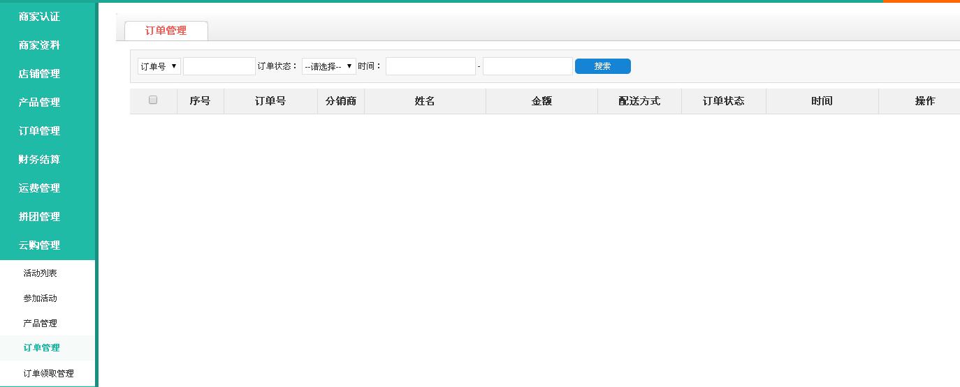 1.订单管理可查询类别为:订单号、商品和购买人。每个选项后,可填写相关查询内容