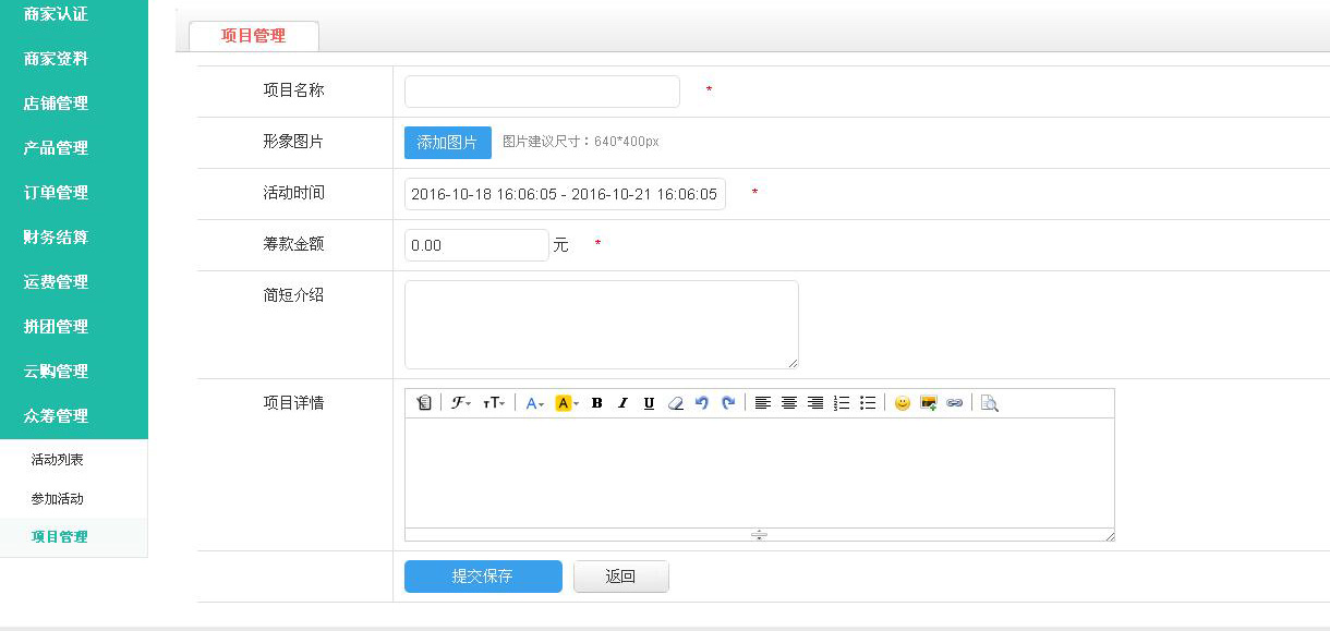 项目详情:填写一下项目的具体操作方法
