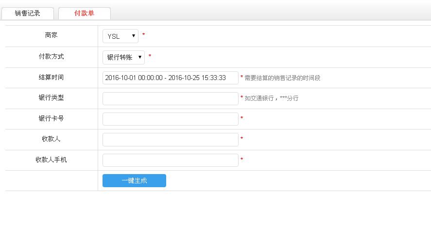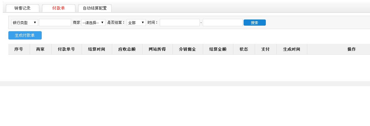 商家:选择需要生成付款单的商家