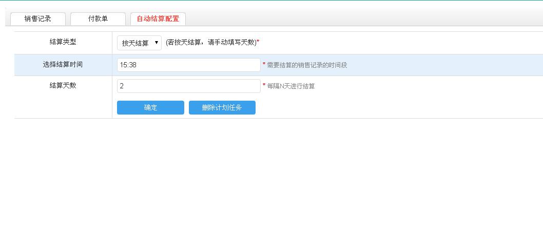结算天数:选择自动结算的天数