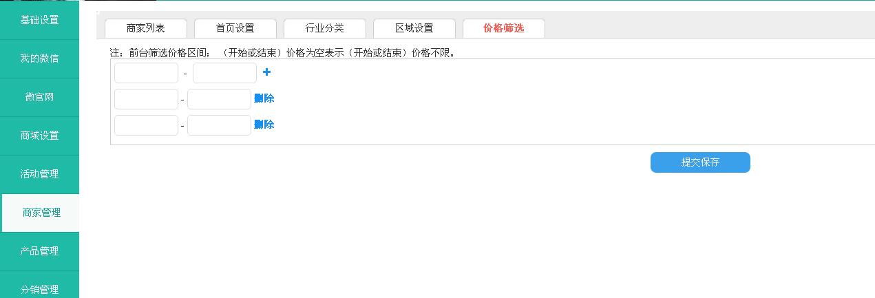可以设置价格区域