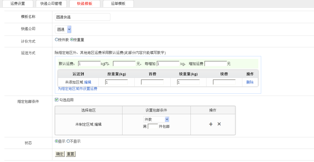 模板名称:填写一下这个快递模板的名称(例如圆通快递)