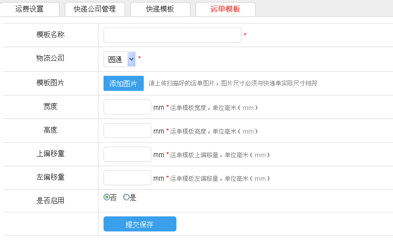 3 模板图片 上传扫描好的运单图片,图片尺寸必须与快递单实际尺寸相符