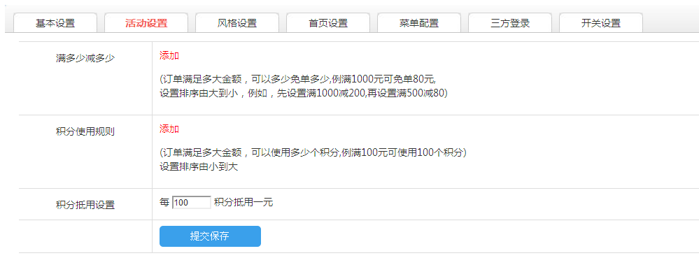 3. 积分设置:会员消费多少钱,赠送一分积分