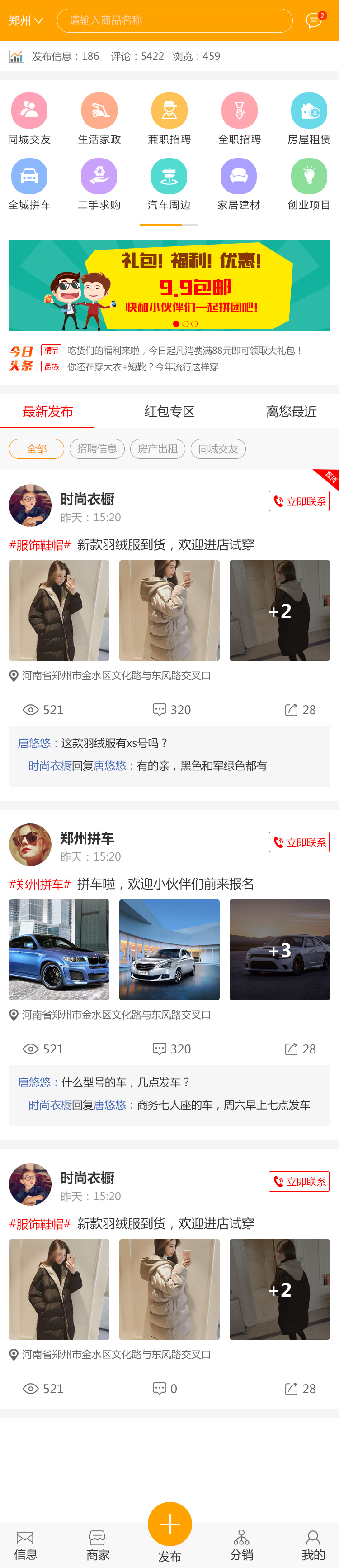 6、种类丰富,求购、租赁、房产、交友、二手货等,种类多样化。