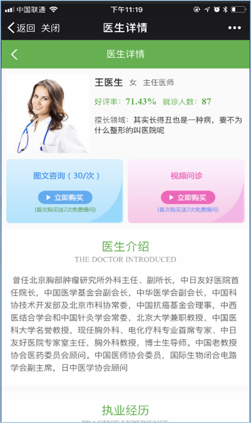 2、患者选择以后,同时也可以看到专家的详细介绍,就医更放心。