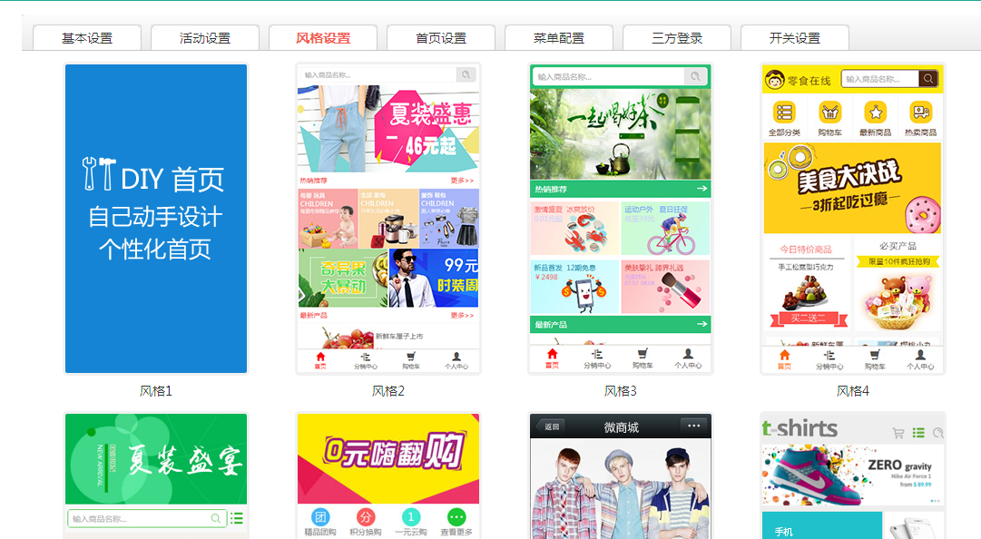是对商城整体风格的设置。可以自己手动DIY,也可以选择系统自带的风格