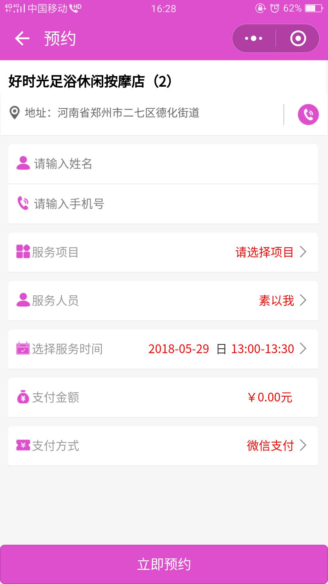 6、服务项目介绍:通过项目介绍,顾客可以直接选择自己要消费的项目和套餐,同时了解消费价格和优惠活动,可以直接预定。顾客可以预约到店时间与服务时间段,商家可以提前进行技师和房间的安排,提高顾客体验满意度。