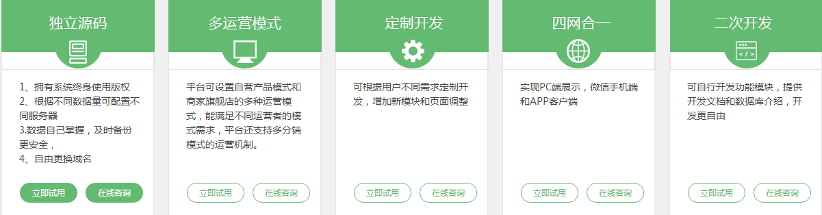 企业自己的官方分销平台,不受任何公司牵制,数据独立,可使用自己域名及空间。支持微信、QQ、微博等全平台分销。