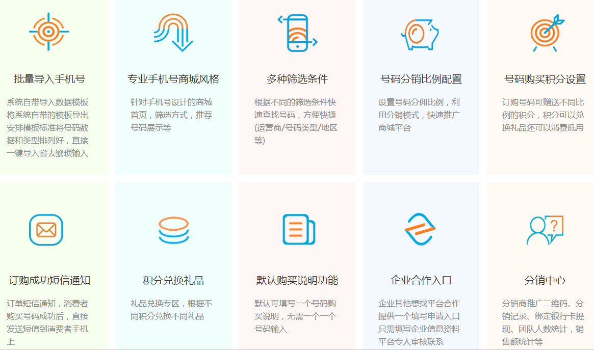 手机号专卖分销系统的功能: