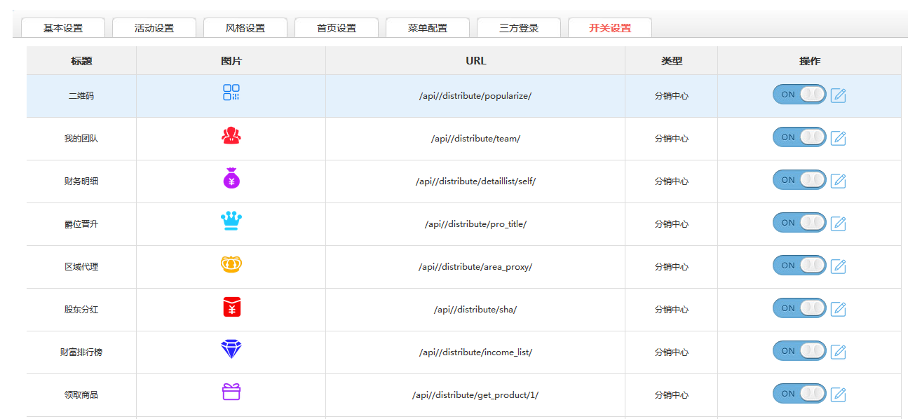分销开关设置里的标题是系统自定义选择的可以根据自己的选择关闭或者开启