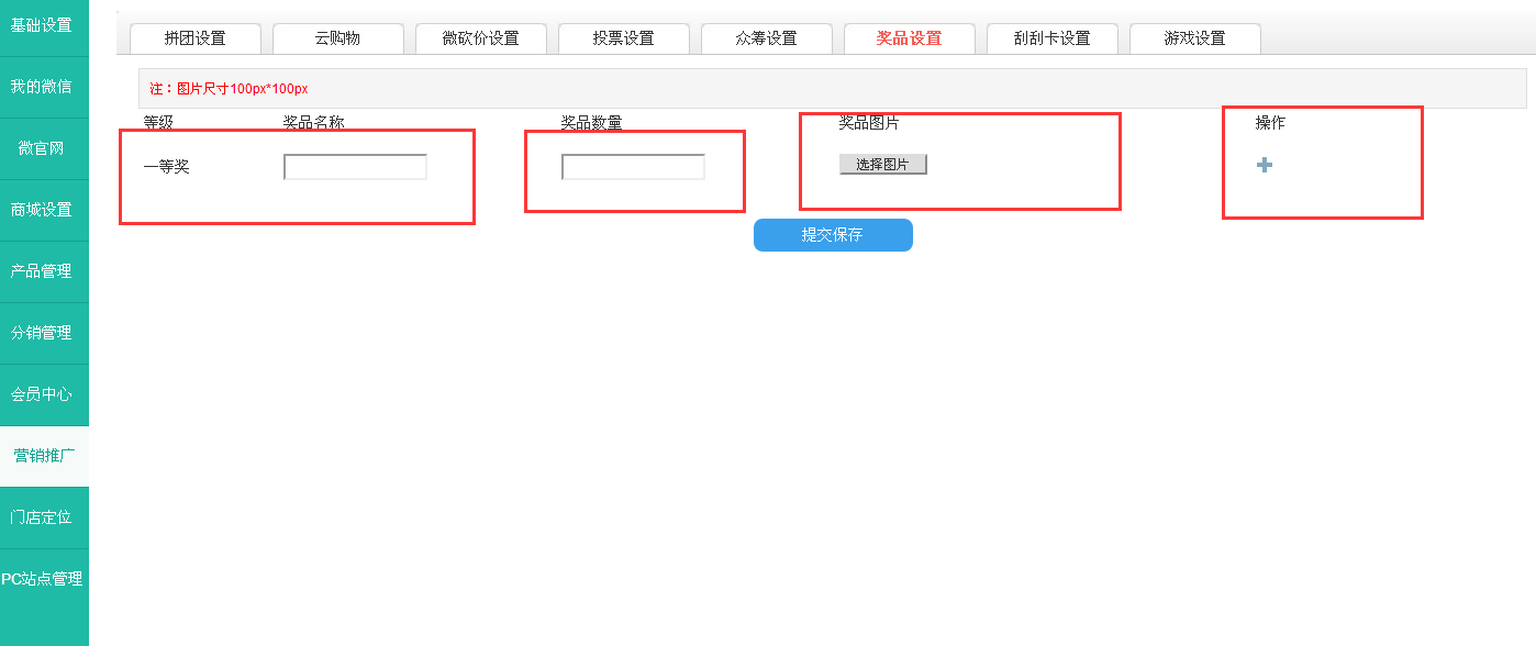 奖品设置最多可为五个,分别为一等奖、二等奖、三等奖、四等奖、五等奖,奖品等级名称不可更改。奖品名称、奖品数量、奖品图片可以自定义添加。其中,建议奖品图片规格为100*100px