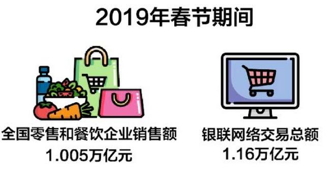 据商务部和中国银联的数据显示,2019年春节期间,全国零售和餐饮企业实现销售额约10050亿元,银联网络交易总额达1.16万亿元。“两个万亿”开门,显示了中国消费市场的巨大潜力。