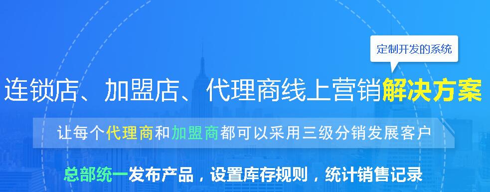 连锁店三级分销系统是重庆安菲科技有限公司专为连锁店、加盟店、代理商开发的线上营销系统,让每个代理商和加盟商都可以采用三级分销发展客户,总部统一发布产品,设置库存规则,统一销售记录。