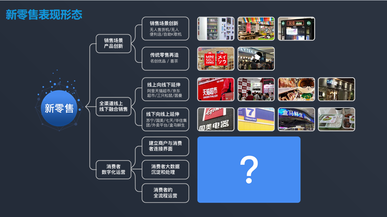 线上线下一体:打通了线上线下一体数据双引流,打通了网店、实体店全渠道终端,经营的环节改造,用户的店铺升级,商品共享,满足消费者“店内即时购、同城快速购、网上全球购”等全场景购物,新零售还实现流量大数据的共享,为平台使用者和客户带来了更多的方便;