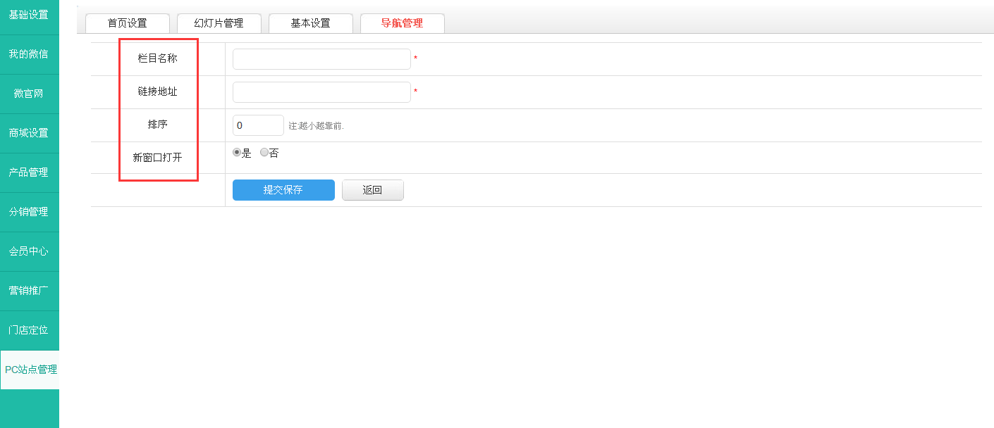 2 链接地址:这个是点击栏目名称时想要它显示出来的链接。