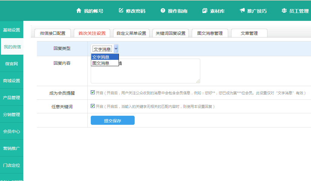做为最好用的微信分销系统,分销在每一处细节上都很用心,这不微信首次关注的设置又增添了新的玩法。