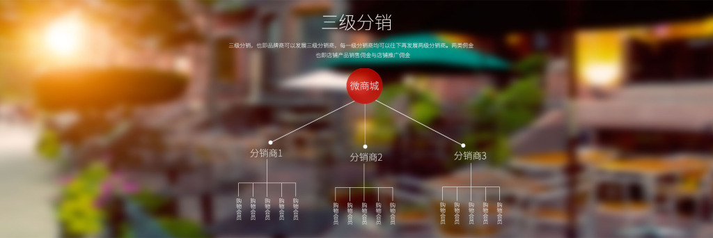 微信三级分销,顾名思义就是开展微信分销的企业通过在微信上开通微信三级分销商城,并在微信分销商城基础上生成专属于代理商的一个分销商城,代理商的下级代理同样可以在在代理商的分销商城中生